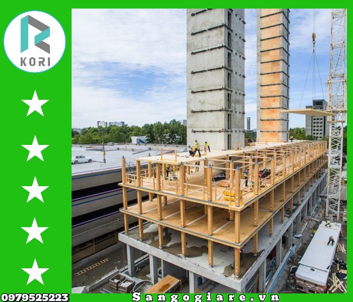 -Thi công nhanh chóng: Nhà cao tầng bằng gỗ dán công nghiệp có thể thi công nhanh chóng hơn so với nhà cao tầng bằng bê tông.