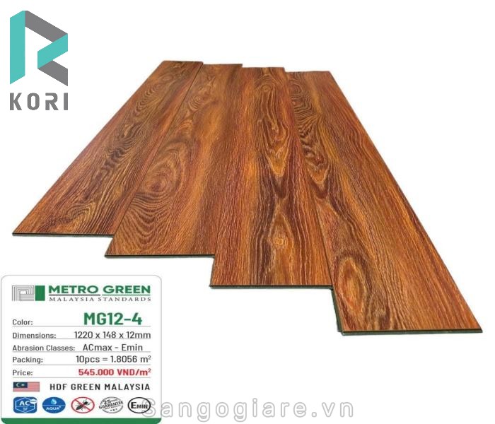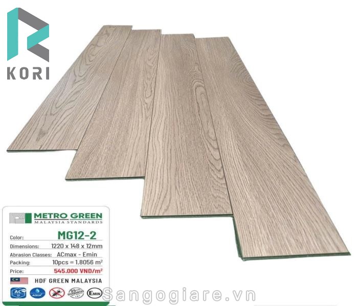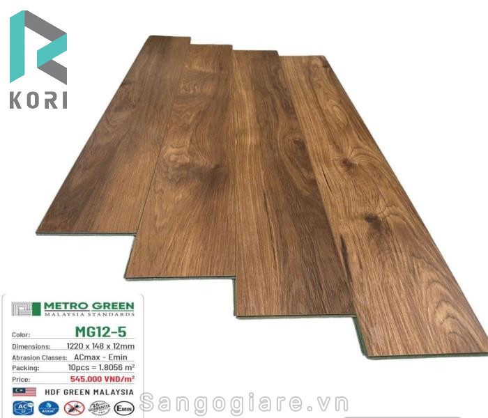 Sàn Gỗ Metro Green cốt xanh dày 12mm sang trọng báo giá tại tổng kho cung cấp và thi công . Sàn gỗ chịu nước, chống trầy xước, lắp đặt dễ dàng, giá rẻ, phù hợp lát sàn phòng khách, phòng ngủ, văn phòng, showroom. Chia sẻ thông tin bởi sangogiare.vn