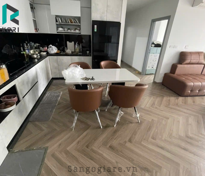 Đây là lựa chọn phổ biến cho căn hộ hiện đại, với màu sắc thịnh hành như gỗ óc chó hoặc sồi trắng.